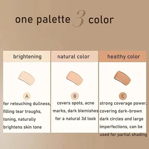 THREE-IN-ONE FORMULA: Complete concealer palette with three complementary shades for brightening, natural coverage, and healthy colour correction in one compact 0.52 oz palette